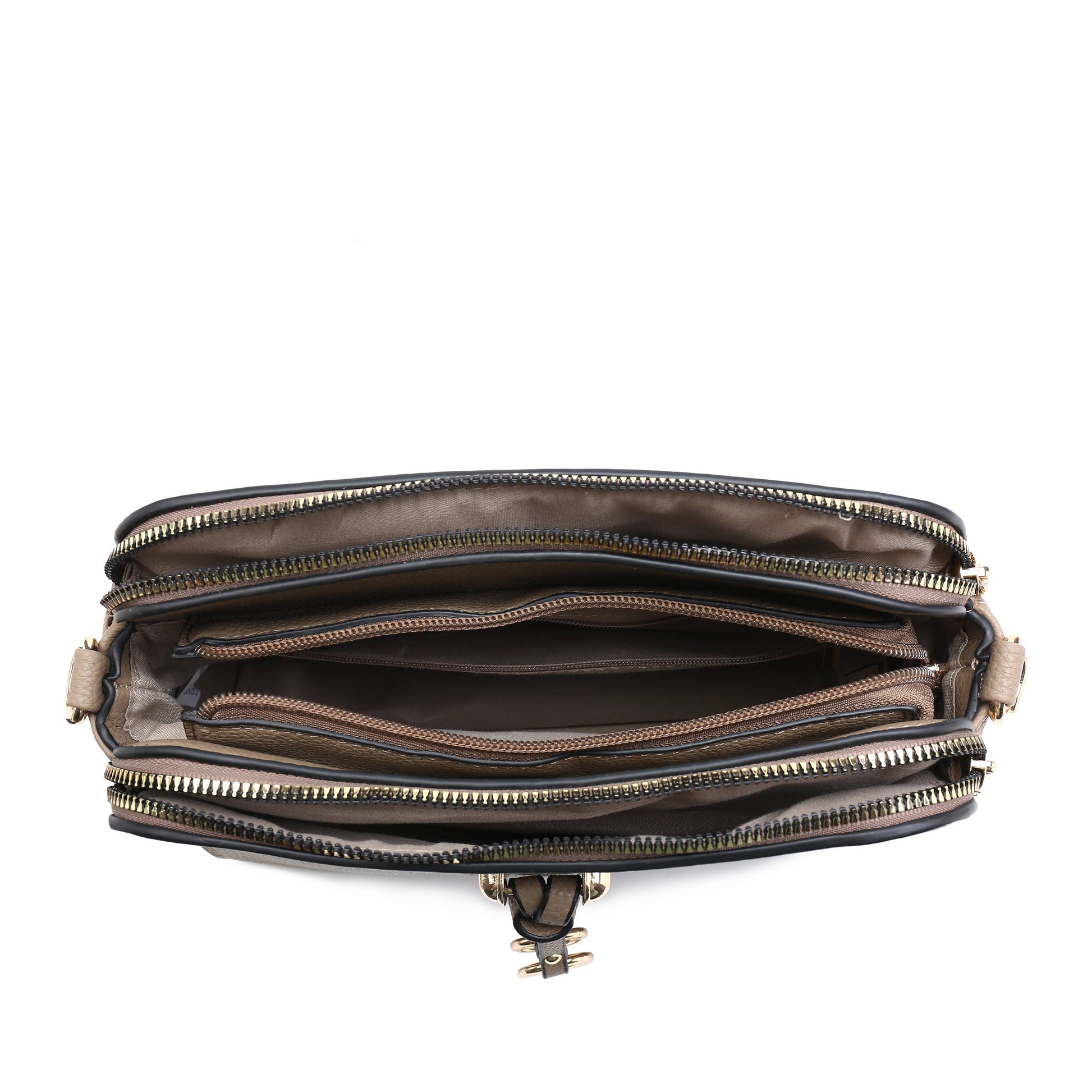 Oatmeal Triple Zipped Sections Canvas Strap Cross Body
