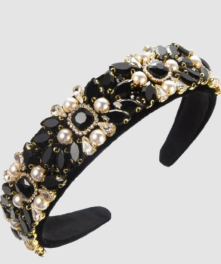 Styled for impact black Jewelled Headband for spring racing carnival, parties, weddings
