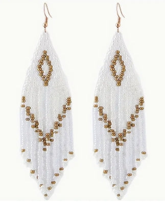 White Boho Style Drop Earrings